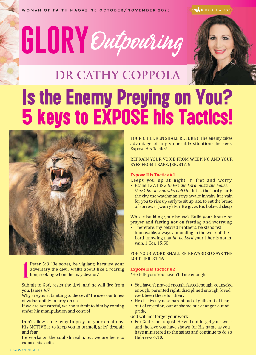 From Woman of Faith Magazine: Is The Enemy Preying On You? 5 Keys to EXPOSE His Tactics!